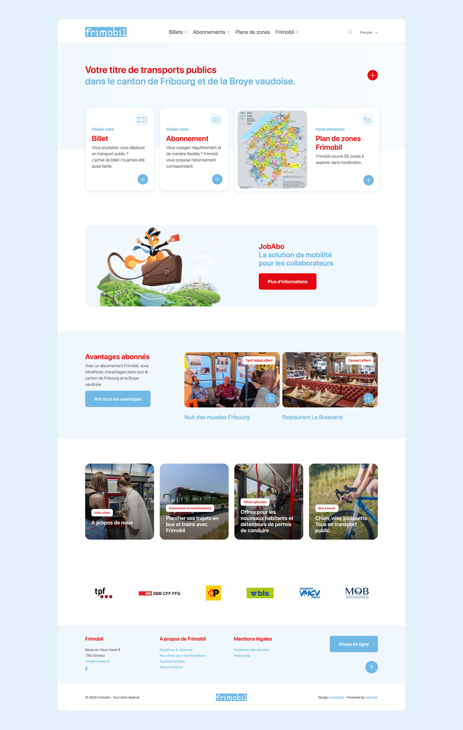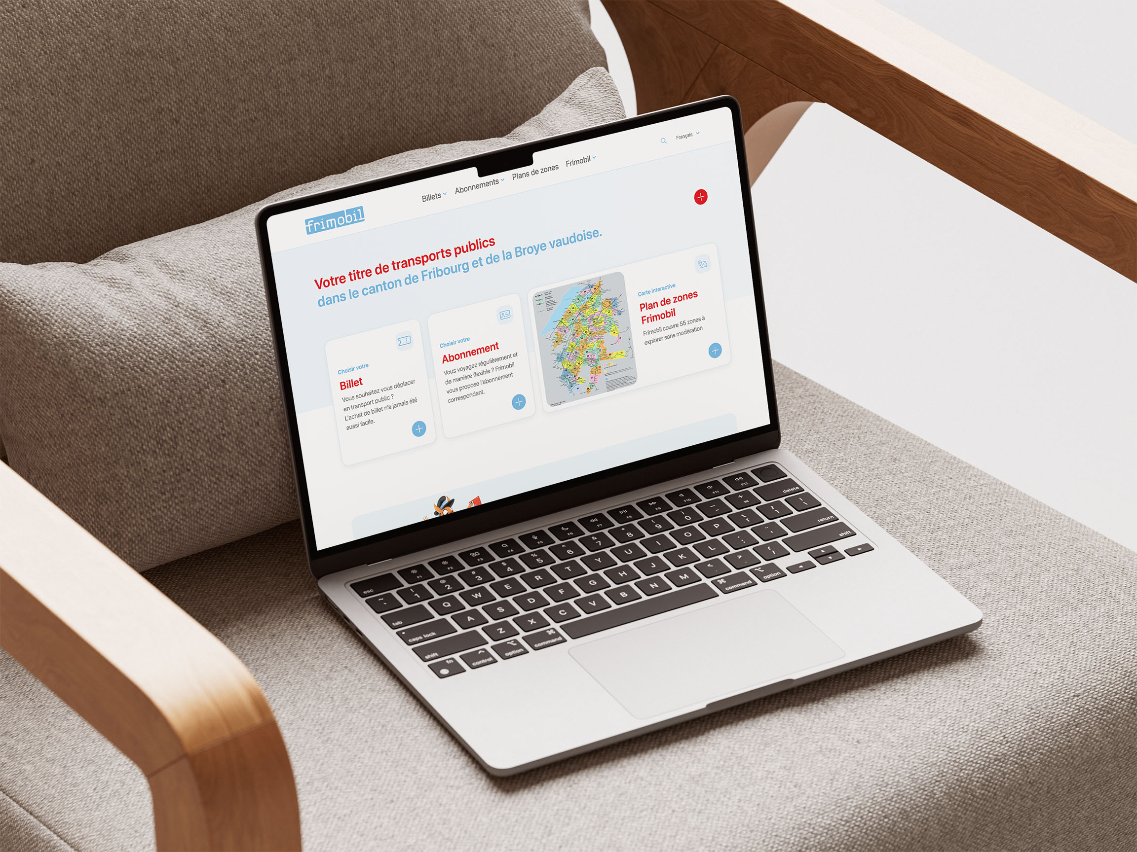 Frimobil, le système tarifaire qui simplifie les déplacements dans tout le canton, nous a confié la création de l’identité graphique de son nouveau site web pour offrir une expérience plus claire et intuitive.